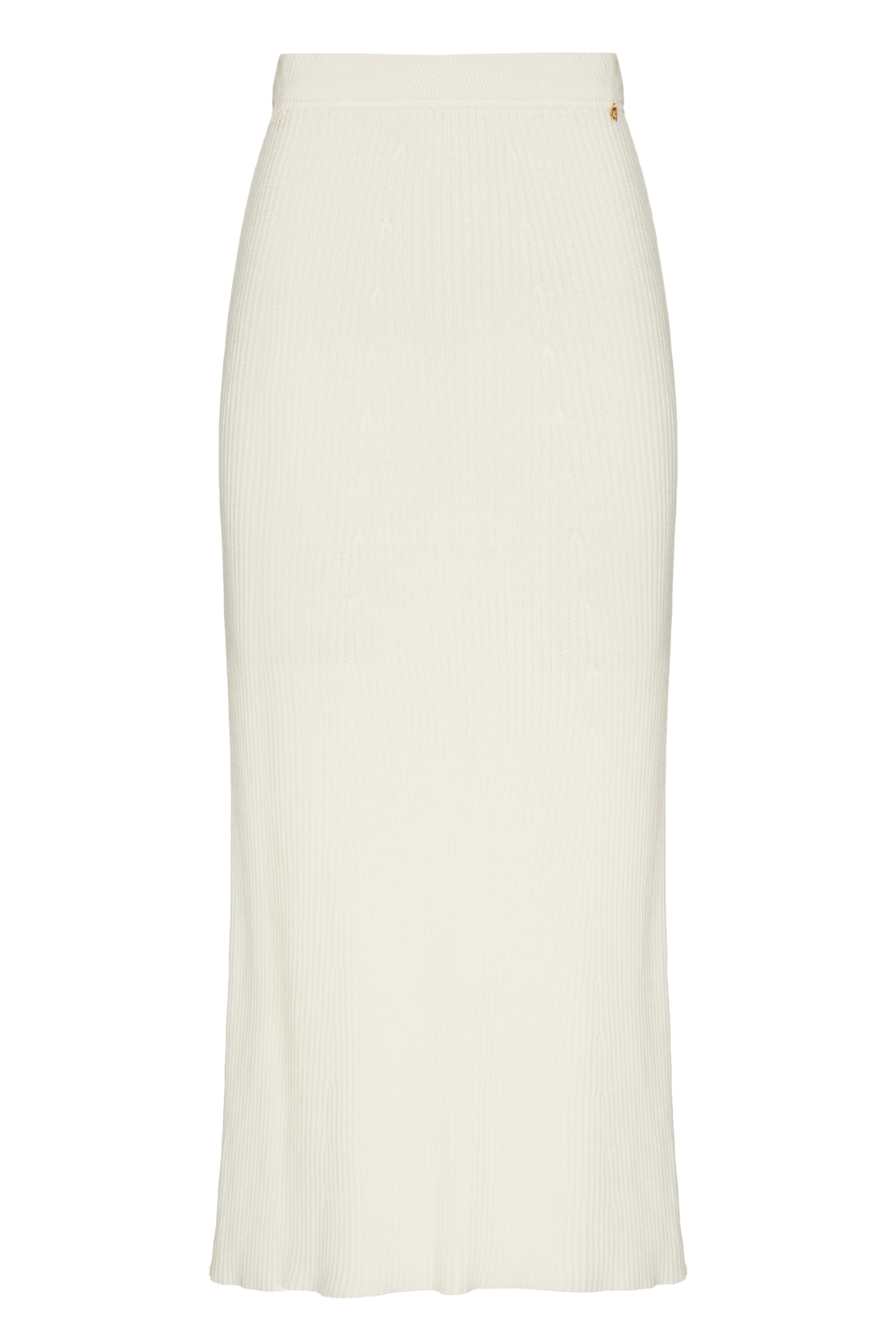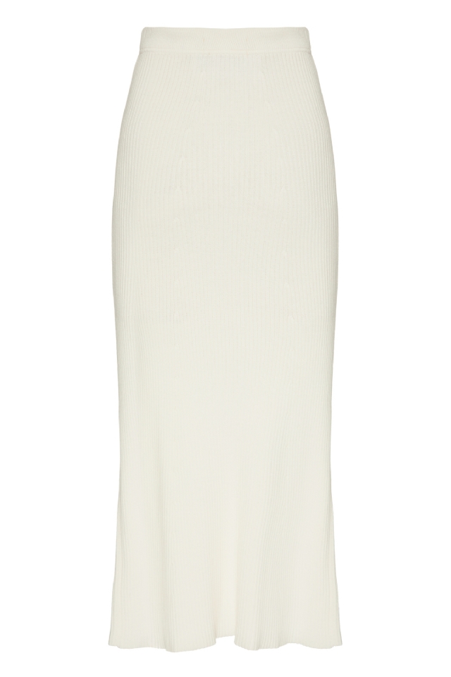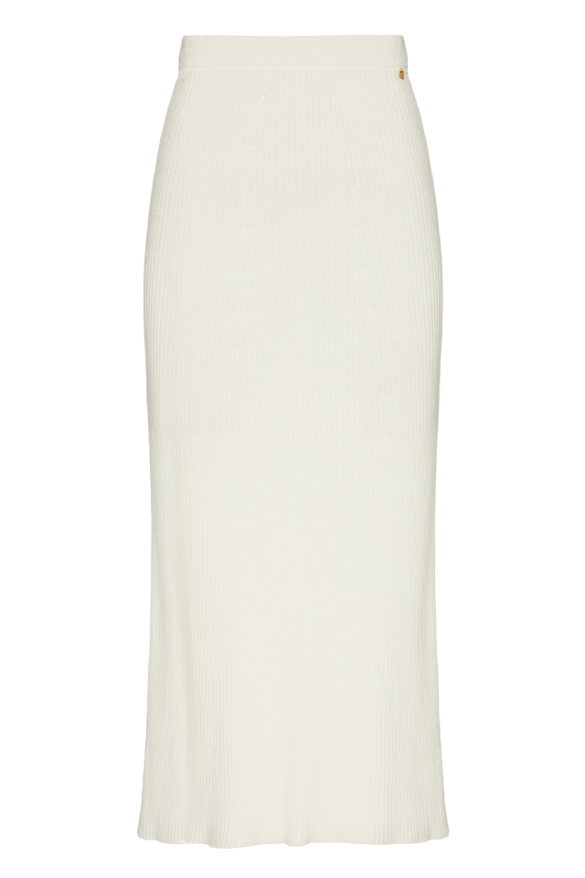 A saia é confeccionada em tricot maquinetado com acabamento canelado, com modelagem estilo lápis e comprimento midi a longo. Possui cós tradicional e caimento que se ajusta ao corpo através da elasticidade do tricot, valorizando a silhueta com conforto e elegância.