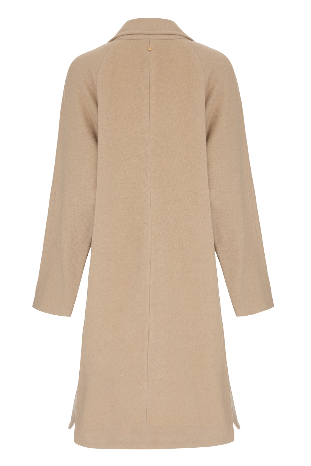 A modelagem alongada valoriza a silhueta e oferece um visual marcante, enquanto os botões personalizados adicionam um toque exclusivo. As aberturas laterais garantem mobilidade e fluidez, tornando o casaco funcional para a rotina urbana. Conta ainda com bolsos discretos, perfeitos para manter as mãos aquecidas.