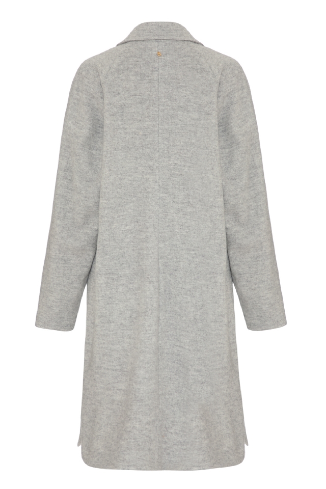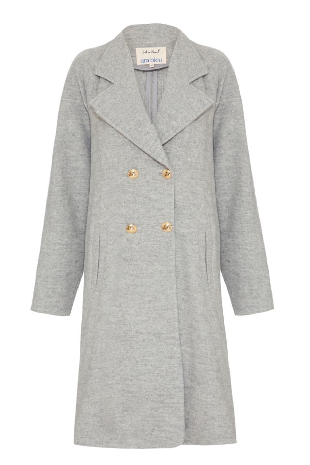 A modelagem alongada valoriza a silhueta e oferece um visual marcante, enquanto os botões personalizados adicionam um toque exclusivo. As aberturas laterais garantem mobilidade e fluidez, tornando o casaco funcional para a rotina urbana. Conta ainda com bolsos discretos, perfeitos para manter as mãos aquecidas.